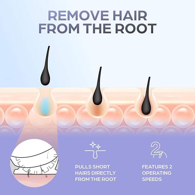- Dual-Speed Control - Offers two operating speeds for precise at-home hair removal, mimicking professional spa treatments with a freshly waxed feel.