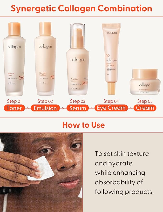 - COLLAGEN TONER FOR YOUNGER-LOOKING SKIN. It's Skin Collagen Nutrition Toner is a face toner that uses marine collagen to help improve the appearance of your skin and make you look younger and more beautiful. This facial collagen toner is a must-have for anyone looking to improve the appearance of their skin.