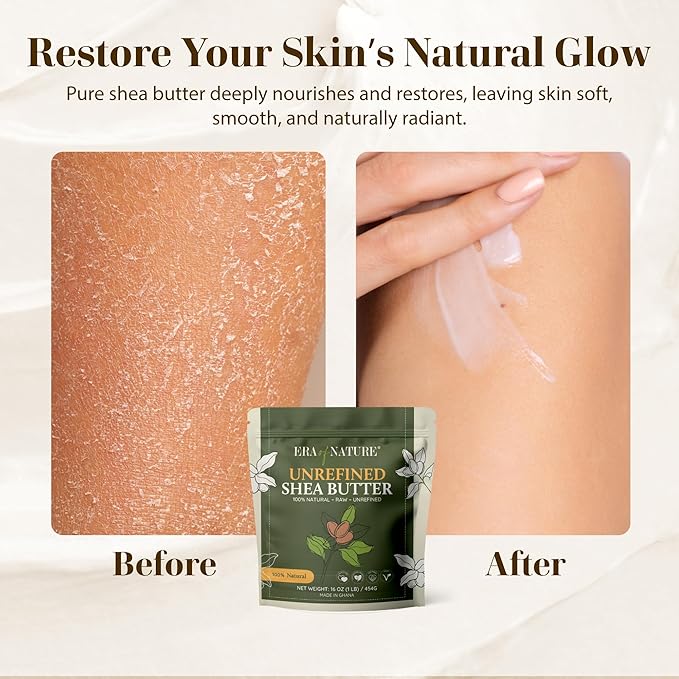 - TRADITIONAL BEAUTY SECRET: For centuries, organic african shea butter has been treasured for natural skin therapy. Our unrefined shea butter delivers deep moisture and healing for radiant, healthy skinโmaking it a trusted addition to your body butter base or lotion bar blends.