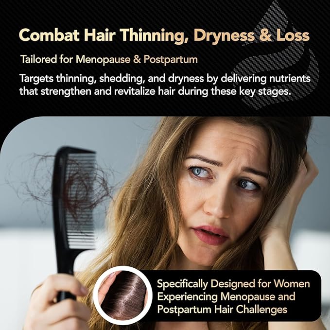 - ✅ MENOPAUSE & POSTPARTUM SUPPORT - Expertly formulated for women facing hair thinning and loss related to hormonal changes. Our capsules target root causes during menopause and postpartum, supporting scalp health and hair strength.