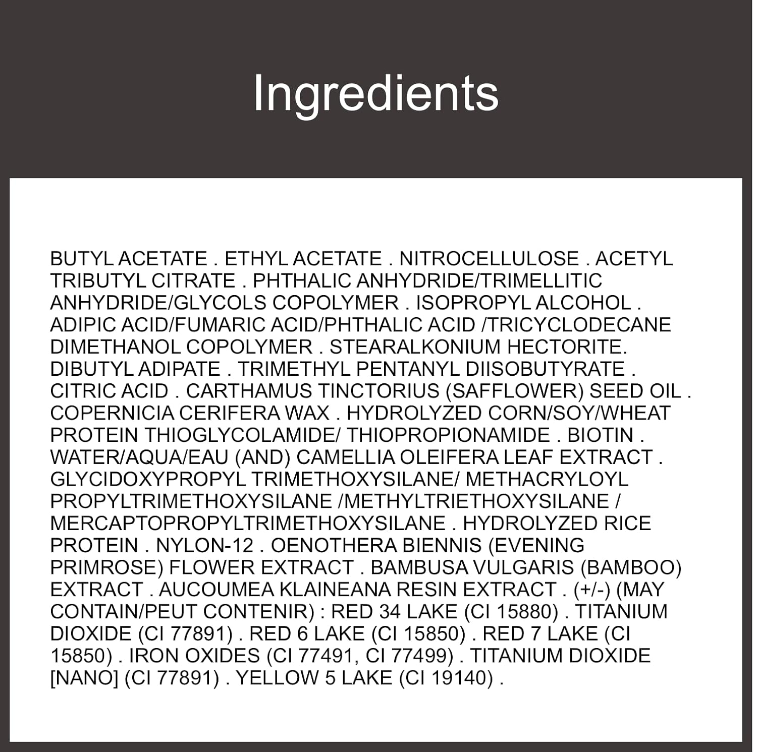 - TREATMENT ENRICHED FORMULA: This dual-patented nail polish formula delivers health, wear and shine with 10 exclusive ingredients to ensure optimum well-being and benefits for the nails. Requires no lamps or tools.