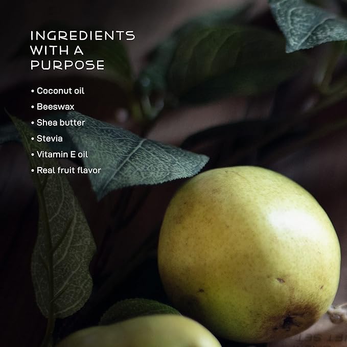 - PEAR LIP BALM - Chapped lips don't stand a chance against our soothing and hydrating lip balm. Formulated with the purest blend of organic shea butter and coconut oil for a smooth and silky balm your lips can easily absorb. Flavored with real organic fruit.