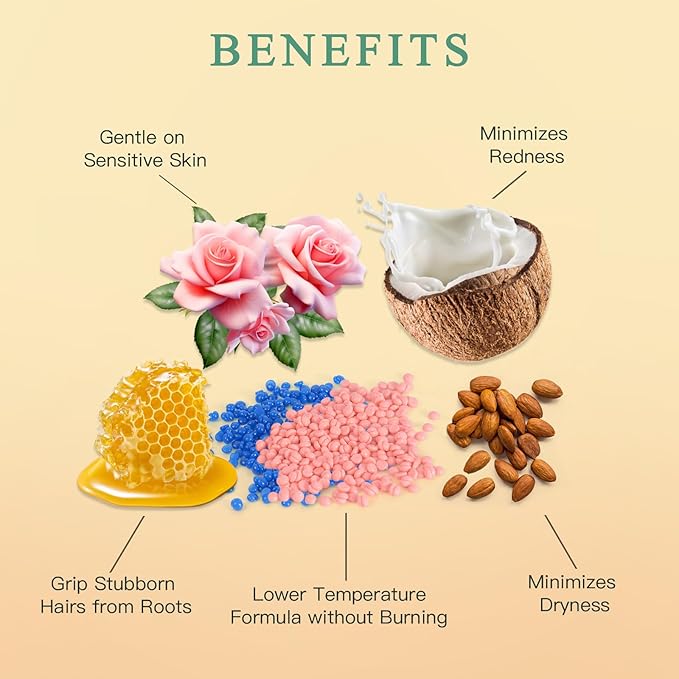 - 【Waxing Beads for Sensitive Skin】BOUVETAN hard wax beans are specifically formulated with hypoallergenic ingredients. They are meticulously designed for sensitive areas hair removal like the bikini line and underarms