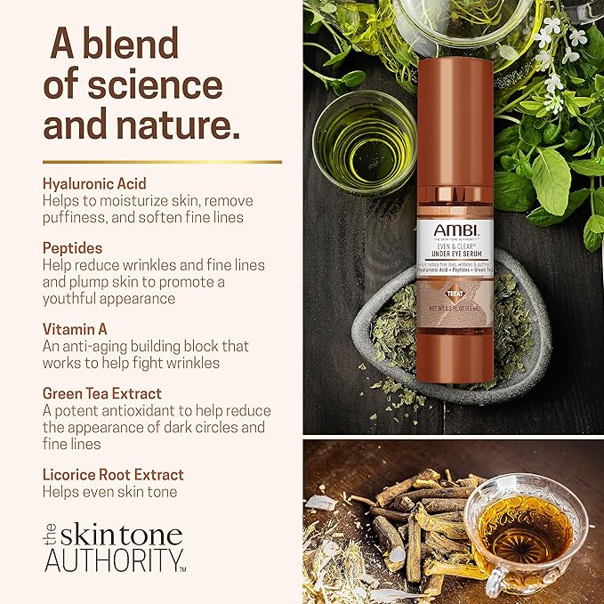 Ambi Even & Clear Under Eye Serum for All Skin Types Anti Aging Formula Features Peptides, Hyaluronic Acid, and Vitamin A to Help Reduce Fine Lines, Wrinkles, and Dark Circles , 0.5 Ounce