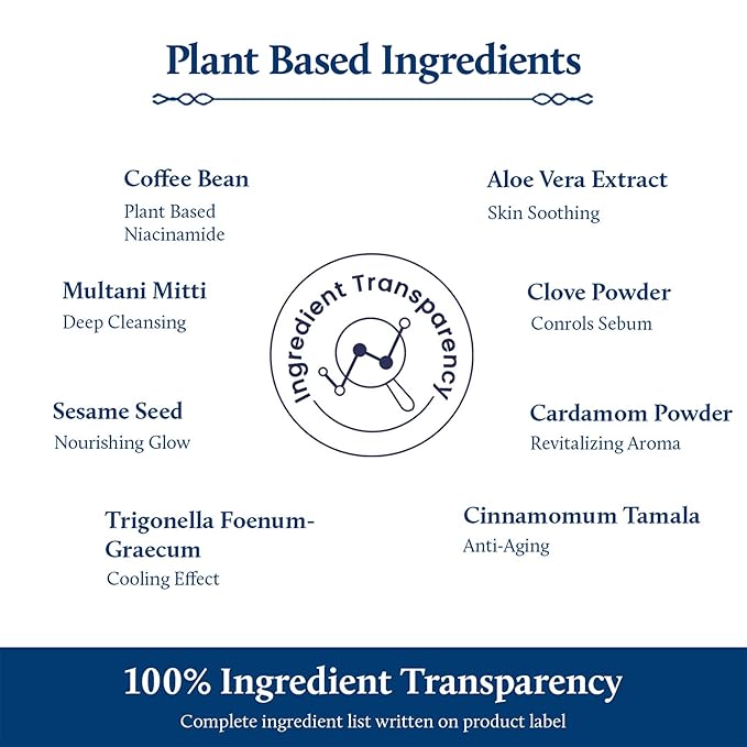 - Experience Even Skin Tone: Blend of active natural ayurvedic herbs like Coffee Beans, Sandalwood with Multani Mitti helps fade dark circles, provides an even skin tone and helps in skin repairing, improving the overall appearance of the skin.