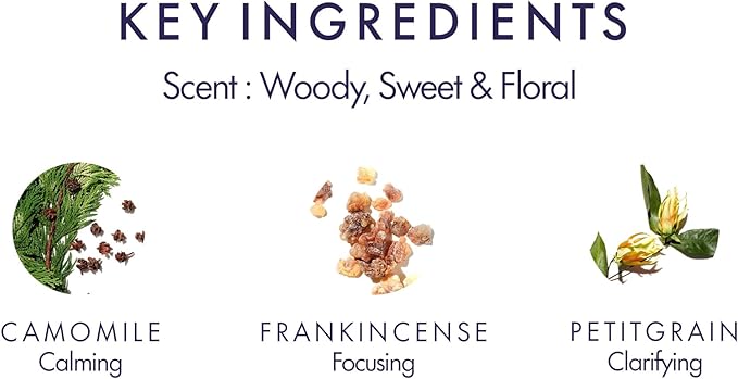 - Feel at Ease and Peaceful. The De-Stress blend is useful at any time of day or night. It combines clarifying frankincense, calming wild chamomile and focusing petitgrain.