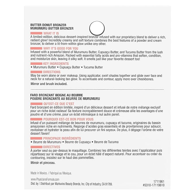 Physicians Formula Murumuru Butter Cheat Day Donut Bronzer, Lightweight, Cruelty-Free, For Sensitive Skin, Dark Shimmer Cream Bronzer, 0.38Oz, Sprinkles