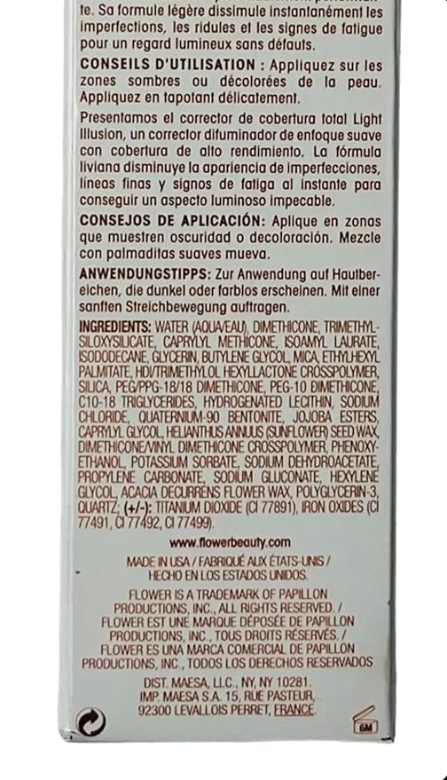 FLOWER BEAUTY By Drew Barrymore Light Illusion Full Coverage Concealer - Diffuse Dark Under Eye Circles + Blurs Blemishes - Weightless Formula + Crease Proof Makeup (Almond)