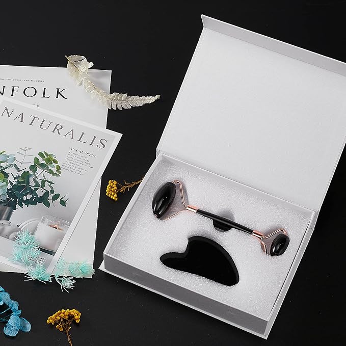 Jade Roller for Face, Facial Roller Massager Skin Care Tool, Gua Sha Facial Tools for Face, Neck, Eyes, Reduce Puffiness of The Skin (Black)