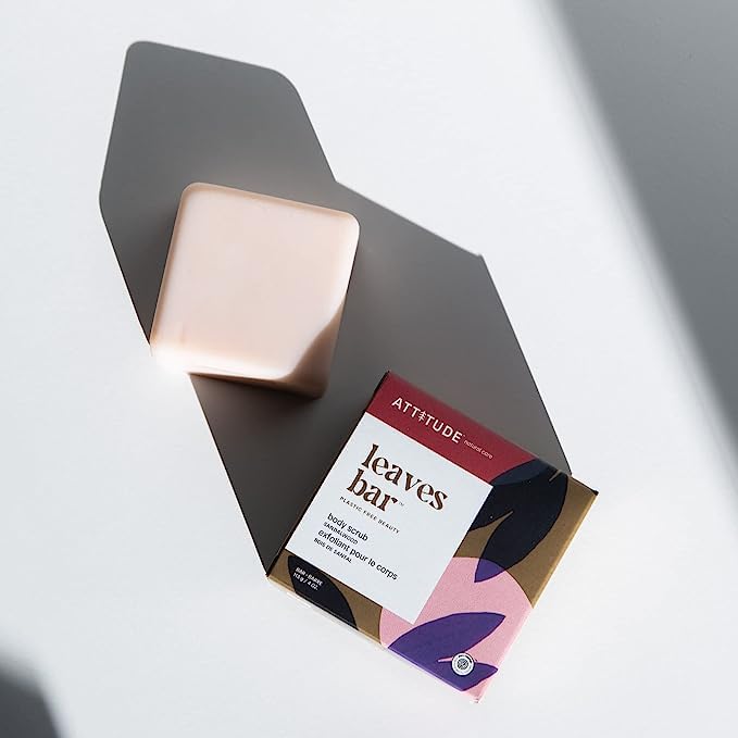 ATTITUDE Body Scrub Bar, Natural Origin, Gentle Exfoliator for Body and Foot, Nourishes and Softens Skin, Bamboo Powder & Shea Butter, EWG verified & Vegan, Sandalwood, 4 Oz