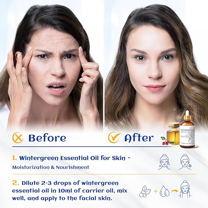 HIQILI Wintergreen Essential Oil,100% Pure Natural,for Diffuser-Inhalation Therapy - 3.38 Fl Oz