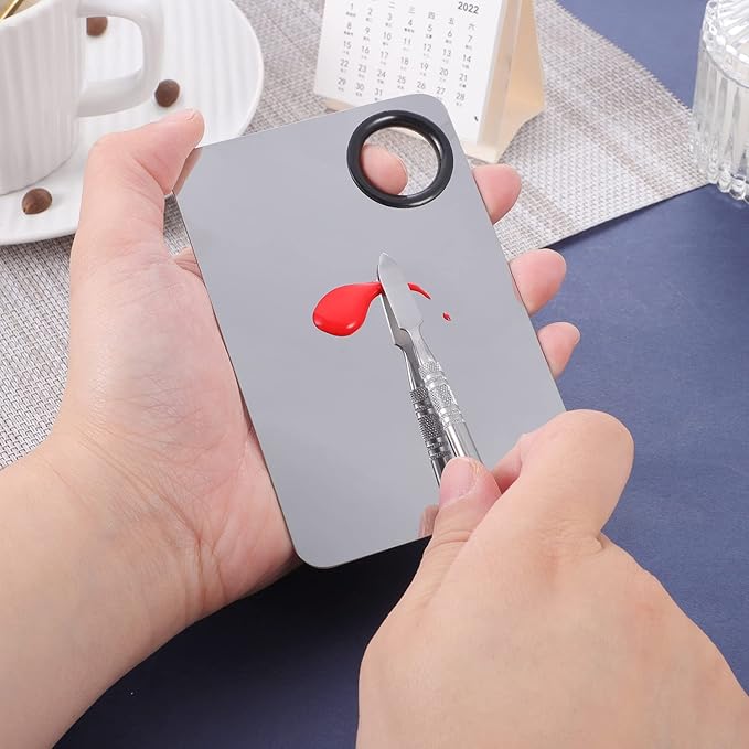 - 【Wide application】Stainless steel makeup mixing tray is suitable for mixing liquid foundation, lipstick, eye shadow and other cosmetics, as well as nail gel, art pigment toning. This makeup palette is perfect for professional makeup artists and non-professional makeup lovers alike, making it the perfect gift for them.
