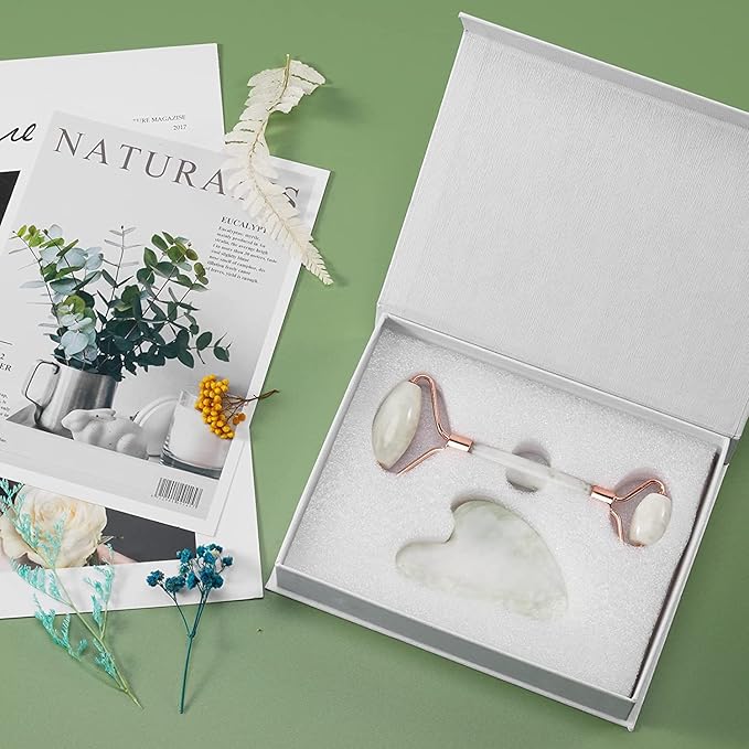 - 【Natural Jade Material】This facial roller gua sha are made of natural jade,which is crystal clear, beautiful color. The handle part of the jade roller, specially selected zinc alloy materials that will not rust to make.