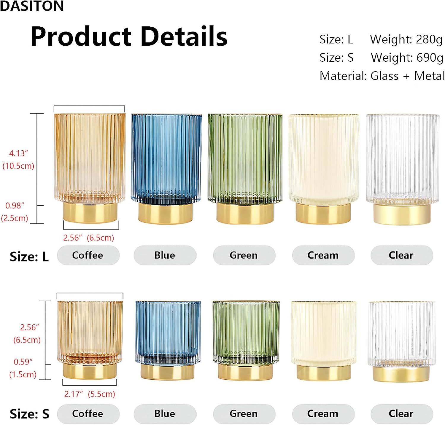 DASITON Makeup Brush holder Organizer,Crystal Cosmetic Makeup Brush Glass Brushes Storage Holder, Vintage Make Up Brush Cup Pen Pencil Holder striped vase(Coffee S+L)