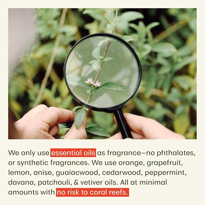 - EFFECTIVE HEALTHY INGREDIENTS โ No chemical sunscreen filters, benzene free, cruelty-free, vegan, PABA-free, GMO-free, paraben-free, no synthetic colors or unhealthy ingredients. No synthetic fragrances added, only a subtle citric scent from natural essential oils.
