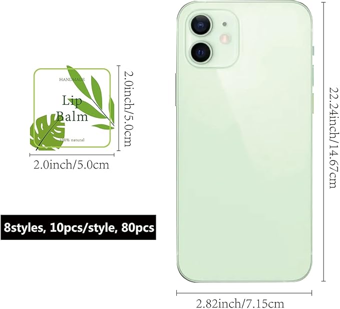 - Package Includes: 80pcs lip balm labels, each about 2 x 2 inches/ 5cm x 5cm. Pattern: green leaves. Great to pack your lip balm tubes, chapstick, handcream, candle jars, essential oil containers etc.