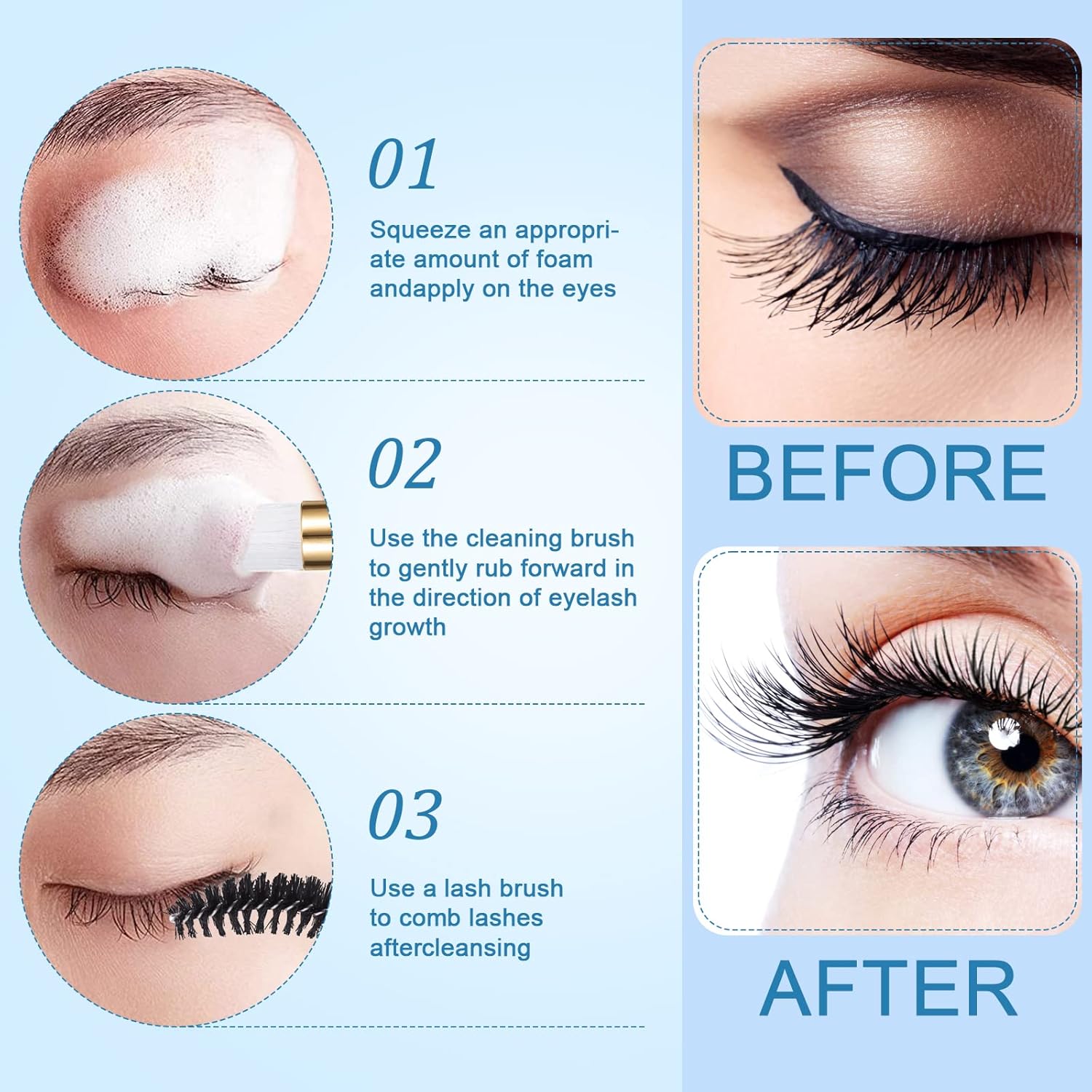 - ใPortable Eyelash Shampoo BottlesใThese about 60ml foam pump bottles are made of PET material, and the spring-loaded button ensures that there is enough liquid to spray into a foam. You can make your own lash cleanser as a gift to a new client's lash extension cleanser. It is also the perfect container for trips, excursions, trips.