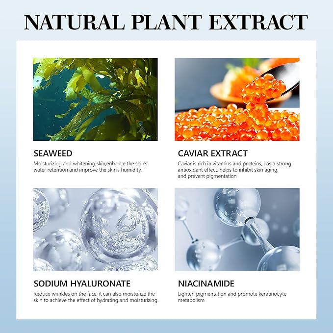 - EYE PATCHES FOR PUFFY EYES WITH NATURAL INGREDIENTS: The dark circle under-eye treatment product for women was made of Seaweed, Caviar Extract, Hyaluronic acid, and Niacinamide providing instant and long-lasting hydration to the skin around your eyes. From the very first application, youโll notice increased hydration, depuffing, tone, and a smoother and brighter surface to give you a new kind of long-lasting confidence.