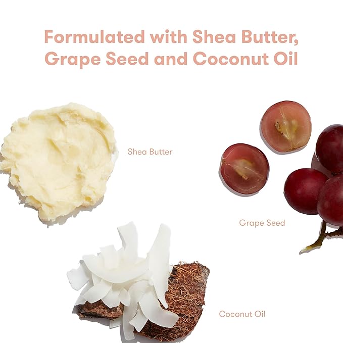- COCOCNUT OIL, SHEA BUTTER + GRAPESEED: Gentle emollients that keep moisture on lock and strengthen the skinโs natural barrier