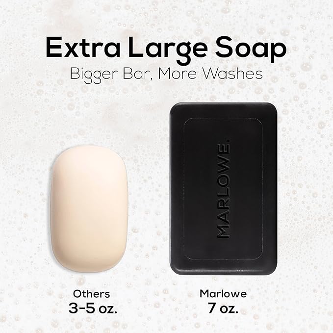 MARLOWE. No. 106 Charcoal Soap 7 oz (6 Bars) Body Bar Soap for Men, Cleansing, Purifying & Hydrating with Natural Extracts, Shea Butter, Olive Oil & Green Tea Extracts, Fresh Woodsy Scent