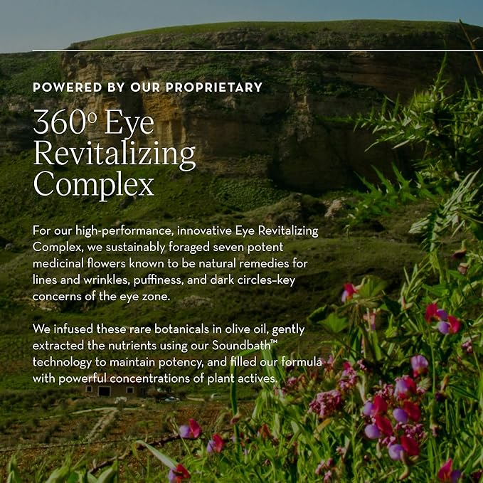 - 360ยบ Eye Revitalizing Complex: A proprietary blend of 14 wild-foraged plants, including artichoke and dandelion, to lift, awaken, and revitalize the extended eye area.