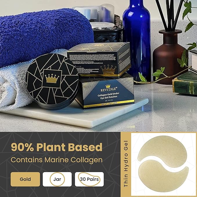 Gold under EYE Collagen Gel Mask, Nourishes, Firms & Hydrates, Puffy Eyes & Dark Circles, Hyaluronic Acid (30 Pairs - Jar)