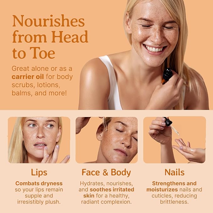 - Special Feature : 100% Money Back Guarantee. Bottled in the USA. Veteran-owned business., 100% Pure. Organic. Unrefined. Cold-pressed. Cruelty-free. Natural., Free from: parabens, hexanes, additives, preservatives., Minimizes Wrinkles. Leaves Skin Smooth and Soft. Prevents Stretch Marks. Promotes Skin Elasticity., Registered Organic with the State of California Dept of Public Health Food & Drug Branch. Reg# 112841. 100% Money Back Guarantee. Bottled in the USA. Veteran-owned business., 100% Pure. Organic. Unrefined. Cold-pressed. Cruelty-free. Natural., Free from: parabens, hexanes, additives, preservatives., Minimizes Wrinkles. Lea… See more