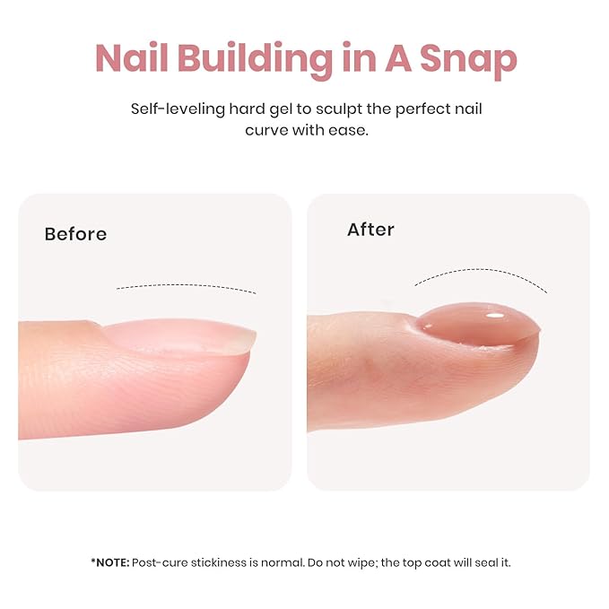 - QUICK AND EASY APPLICATION: Create classy manicures with nude builder gel,brush , expand, sculpt nails as desired and cure for 60 seconds LED or 2 minutes UV to keep it in place. Its light self-leveling properties assist in an effortless application on the nail. Once you attach all the nail extensions, proceed with polish and whatever designs you want