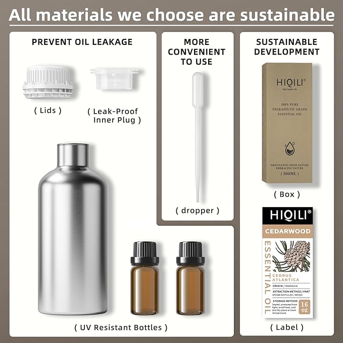 HIQILI 16 Fl Oz Cedarwood Essential Oil, Pure Natural Cedarwood Oil for Hair, Diffuser, Aromatherapy - 500ML