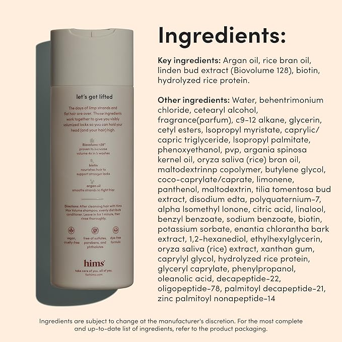 hims Max Volume Conditioner, 2 Pack - Volumizing Conditioner for Men with Biotin - Adds Lightweight Volume, Shine & Bounce - Citrus Spice - 2 x 6.4 fl oz