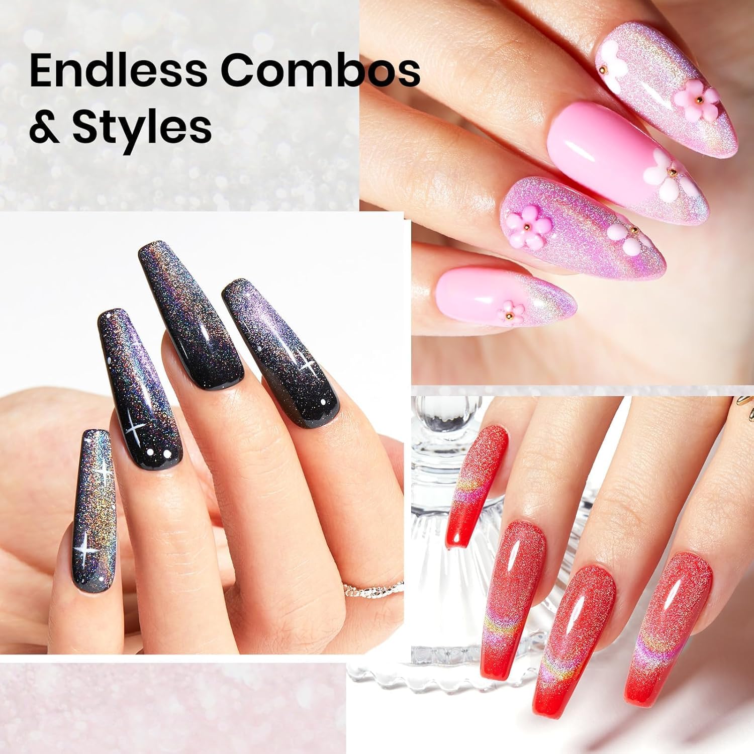 Beetles Rainbow Holographic Cat Eye Gel Nail Polish, 15ml, Magnet Stick, Soak Off, Uv Nail Shimmer, Velvet, French Nail Art Design, Gift for Women