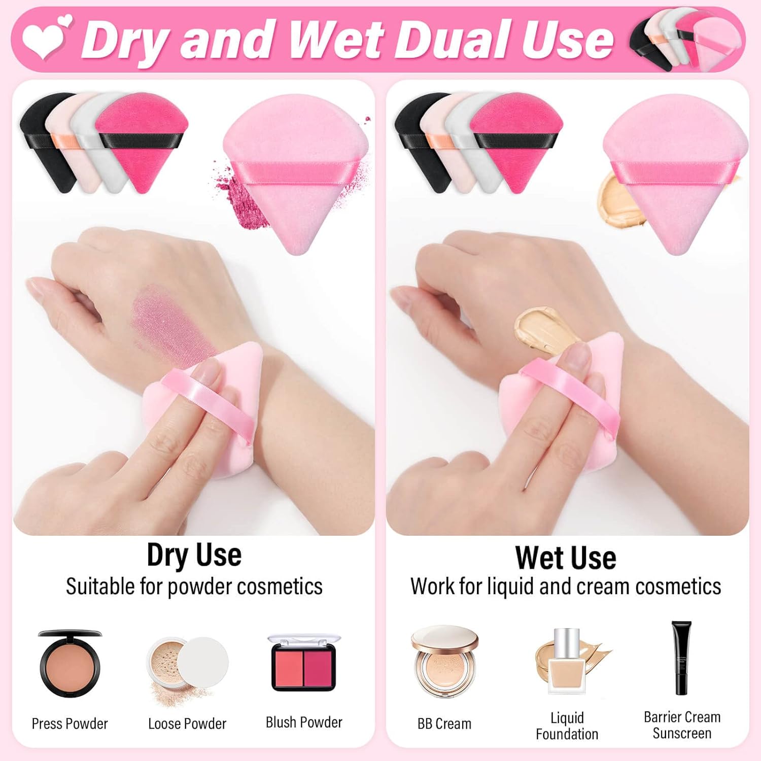 - Triangle Powder Puffs Bulk: The makeup sponge set includes 60 pieces of makeup powder puffs in five colors, great value quantities and colors for you to choose, use and replace