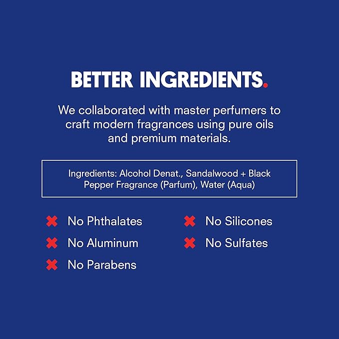 - BEST POSSIBLE INGREDIENTS: We’ve worked alongside master perfumers to create a modern, fine fragrance rendition of our signature scents using a high-quality blend of oils and safe ingredients, free from harmful chemicals like parabens and phthalates.