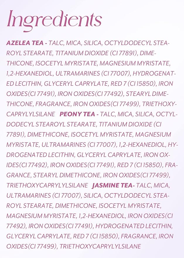 - π FALL IN LOVE WITH BLOSSOM TEA: I'm Afternoon Tea Blusher Palette new edition in Blossom Tea Blended shade is a cool tone blusher that make your cheeks radiant like a flower with a subtle floral scent. Comes in 11.4 g / 0.4 OZ.