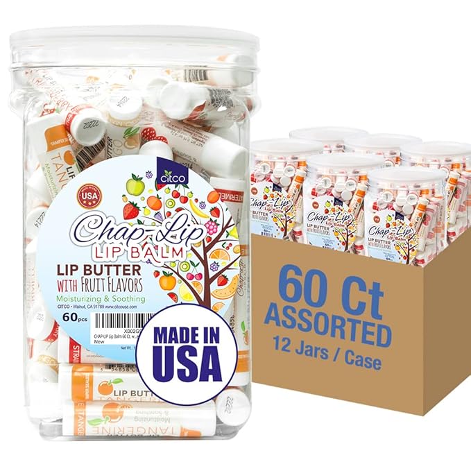 CHAP-LIP Lip Balm 60 Ct. with Fruit Flavors, Cocoa Butter, Coconut Oil | Moisturizing Vitamin E & Total Hydration Treatment & Soothing Lip Therapy (60 Ct Pack of 12)