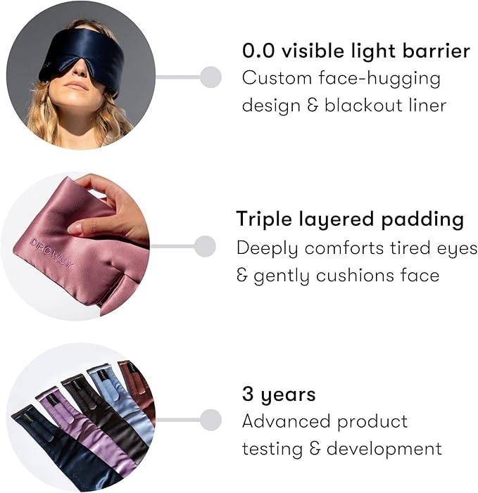 - ✔︎ THE WORLD’S MOST LUXURIOUS SLEEP MASK – Loved by beauty editors and celebrities around the world. Multi award-winning. Drowsy is the beauty industry’s silk sleep mask of choice. Wrap your eyes in padded silk for an uninterrupted, glorious sleeping experience every night.