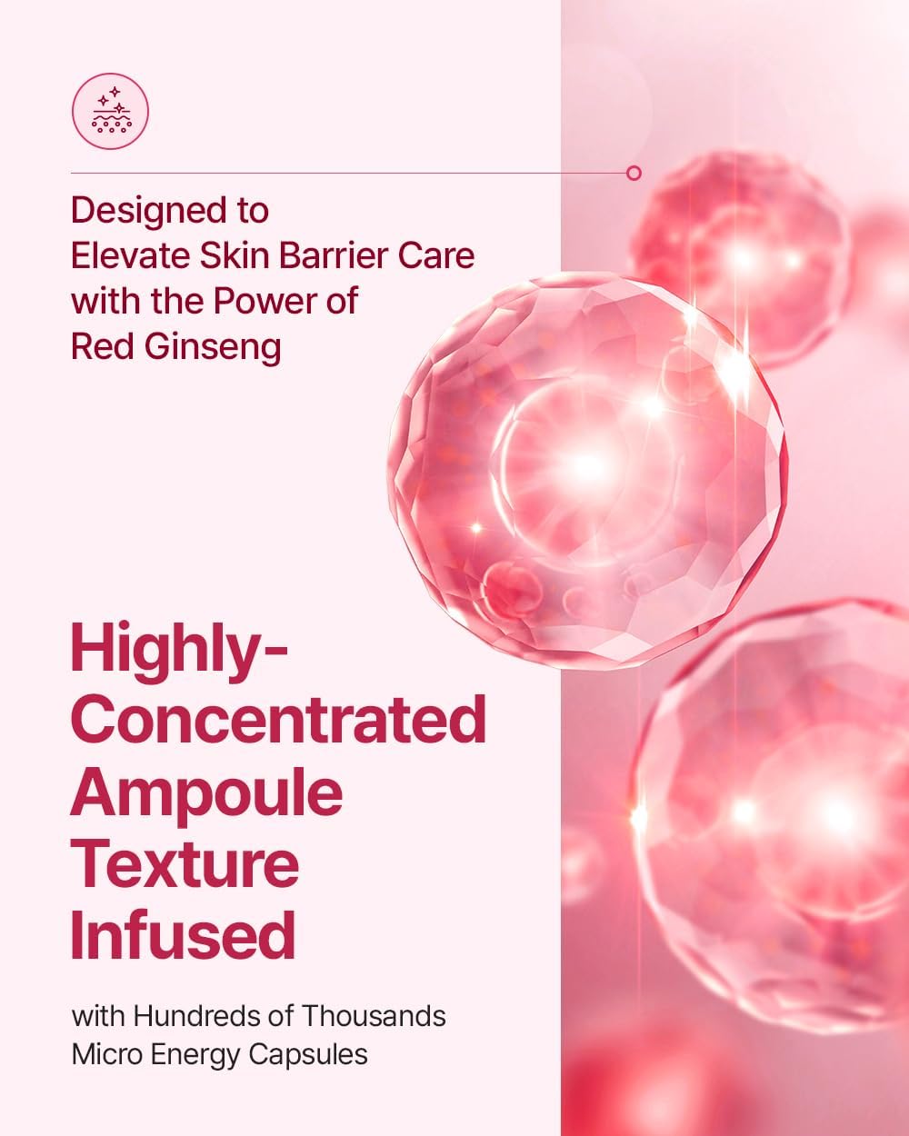 - 【Micro Energy Capsules Technology】 Enhanced delivery of ginseng benefits. Revolutionary capsules ensure deeper penetration of red ginseng's benefits, amplifying skin rejuvenation and radiance.