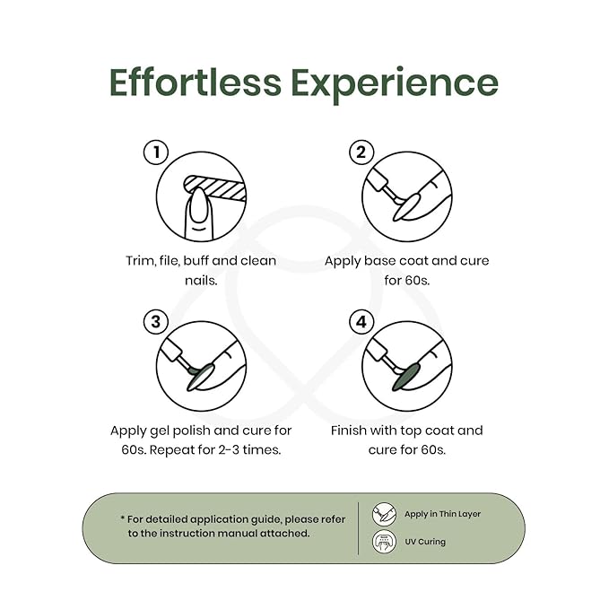 - High-Gloss & Smooth Application – Each soak off UV LED gel polish glides on evenly with a rich, pigmented finish. The professional-grade formula provides flawless coverage with minimal effort.