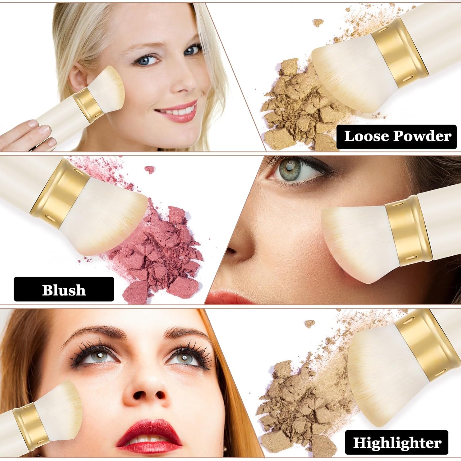 - ใSoft and Silky Brush Hairใ The angled kabuki foundation brush made with high quality synthetic fibers, super soft, perfect for blending Liquid foundation , sunscreen, blush, cream, self tanner, buffing, stippling, concealer, bronzer, loose powder cosmetics or nail dust. allows you to tap on products for flawless, air-touched, full-coverage finish, don't absorb foundation into the brush itself.