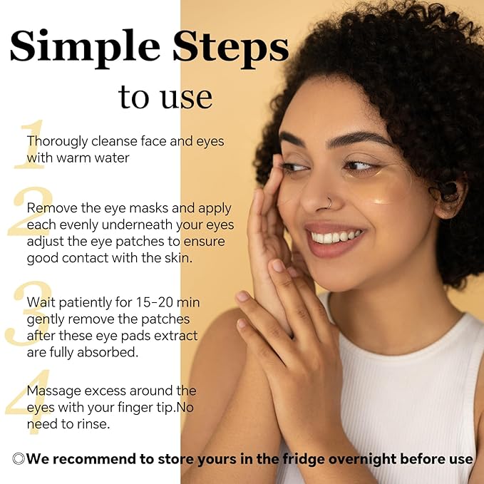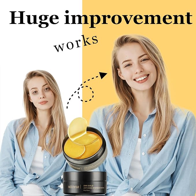 - 24K Gold Effect: gold eye mask is one of the most popular eye masks on the market, not just only like this eye mask's gold color, itโs most important this gold under eye patches have a huge improvement for problematic skin. Especially when it comes to anti-aging.