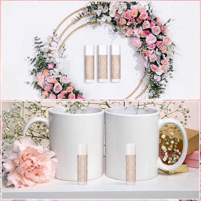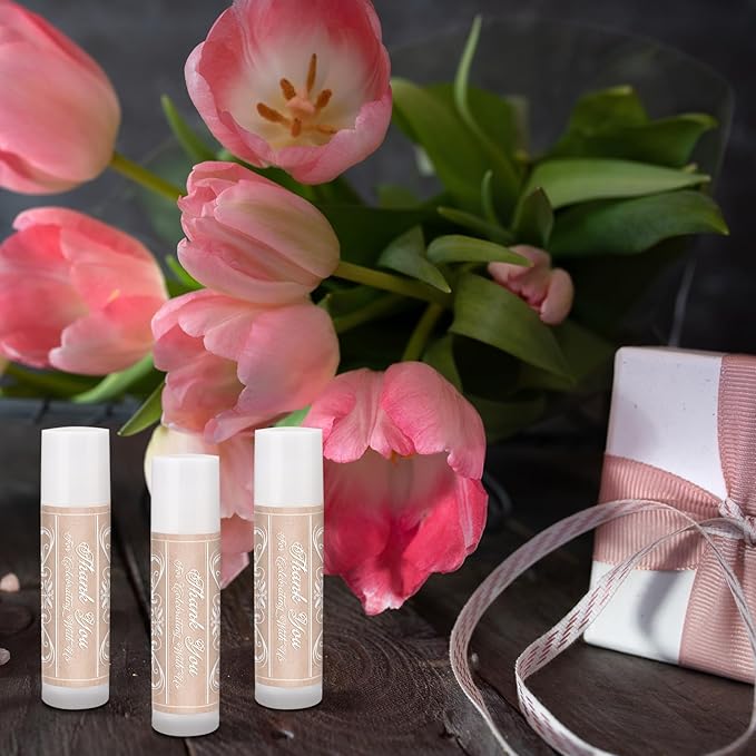 Dunzy 50 Pcs Thank You Gift Lip Balm Bulk Baby Shower Party Favors Bridal Shower Favor Lip Care with Assorted Fruit Flavors Thank You Lipstick for Guest Basket Gift Stuffer (Vintage)