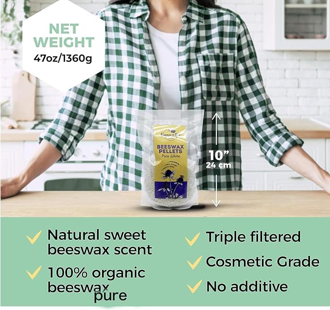 - π [Premium Quality] Our beeswax is triple-filtered to ensure its purity, making it the perfect choice beeswax food grade and beeswax for skin care products. Its natural scent make it a unique and sustainable alternative to traditional wax productsγWhy should you use this?γOur premium quality natural beeswax pallets and bees wax melts are handcrafted to perfection, providing a long-lasting and authentic aroma for your home or personal projects