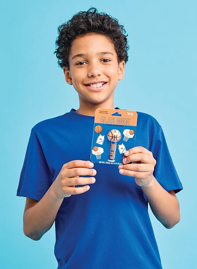 - This terrific lip balm features a basketball shaped cap and fun Slam Dunk container, too