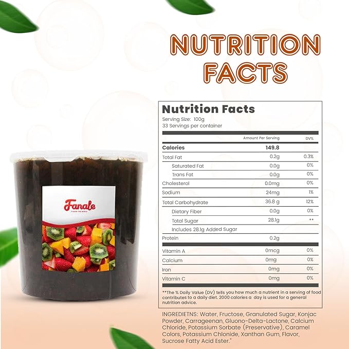 - 𝐒𝐰𝐞𝐞𝐭 𝐚𝐧𝐝 𝐄𝐱𝐨𝐭𝐢𝐜 𝐅𝐥𝐚𝐯𝐨𝐫: Each Fanale coconut jelly boba tea variety is infused with sweet and exotic flavors that complement a range of recipes. This nata de coco jelly topping includes strawberry, lychee, blueberry, mango, sakura, green apple, coconut, Konjac, and coffee flavors, adding a distinct and delightful twist to your creations.
