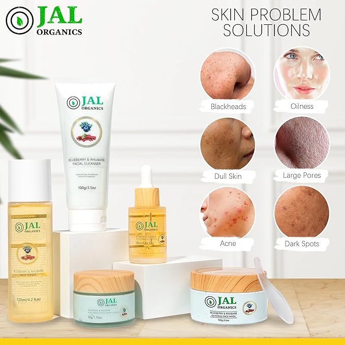 - ๐ฐ Maximize Your Skincare Investment with A Smart Choice: Investing in the Jal Organics 5-piece Blueberry Rhubarb Skincare system is not just a purchase, but a smart move. Enjoy a comprehensive skincare routine without breaking the bank, thanks to our perfect blend of high-quality ingredients and multiple products. Witness the transformative effects of our premium skincare system as you indulge in cost-effective skincare luxury.