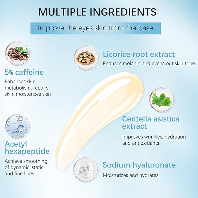 - Multiple functions, effectively reducing the appearance of eye bags & dark circles, solving under eye sagging & loss of firmness condition contracting puffiness and wrinkles, tightening the loose skin.