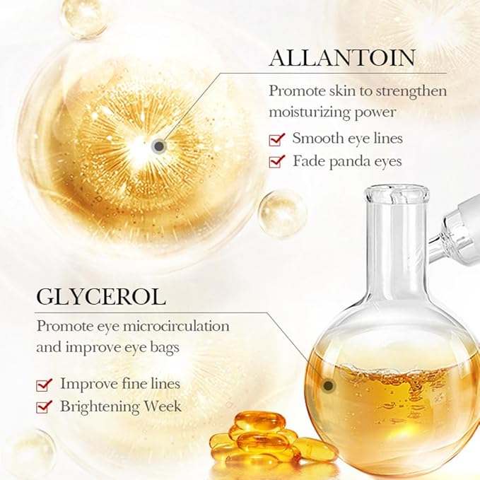 - Efficient Moisturizing: The allantoin in the under eye patches to hydrate and moisturize your skin, improve dullness and smooth out wrinkles. Glycerol can quickly penetrate into the base of the skin, effectively providing concentrated care and deep repair to the delicate areas around the eyes.
