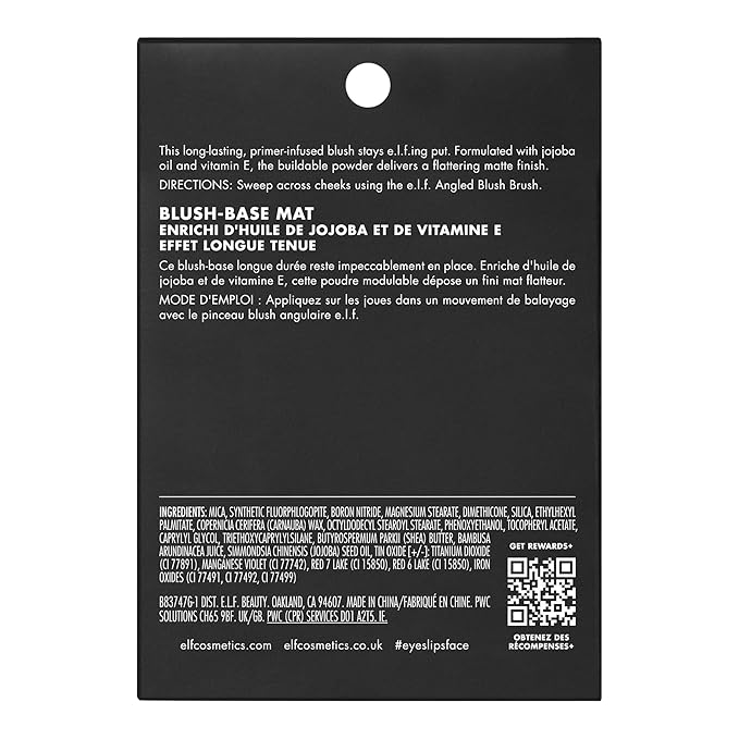 e.l.f. Primer-Infused Matte Blush, Long-Lasting, Lightweight & Buildable Powder Blush, Delivers A Matte Finish, Vegan & Cruelty-Free, Always Fresh