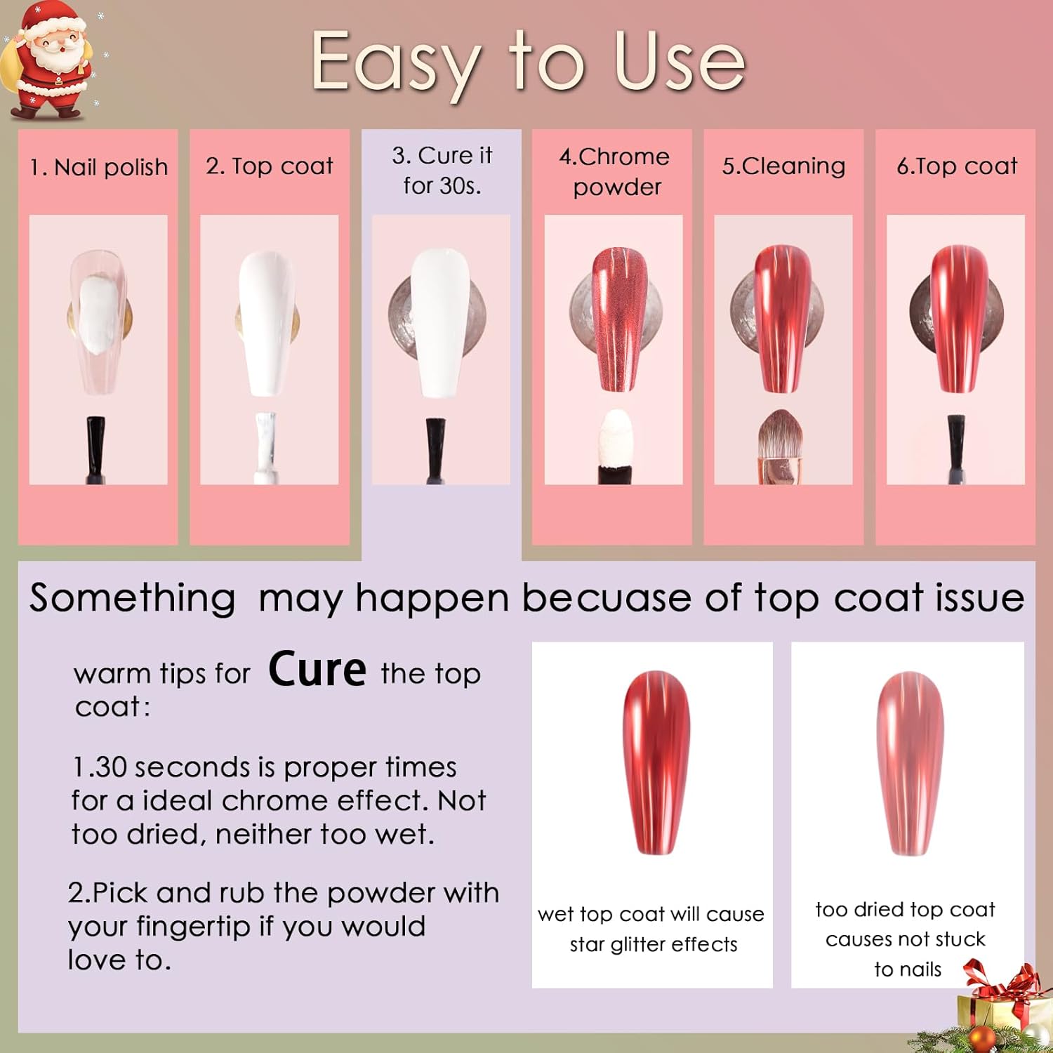 - Multiple Effects: Allstarry Chrome Nail Powder is an ideal pigment powder for valentines day nails that can be used to make sparkling mirror effects, water ripple effects, bubble effects, star effects for your acrylic extensions, gel extensions, and gel polish manicures. Whatโs more, the ultra-fine chrome powder makes the chrome mirror plating effect and holographic effect very significant.
