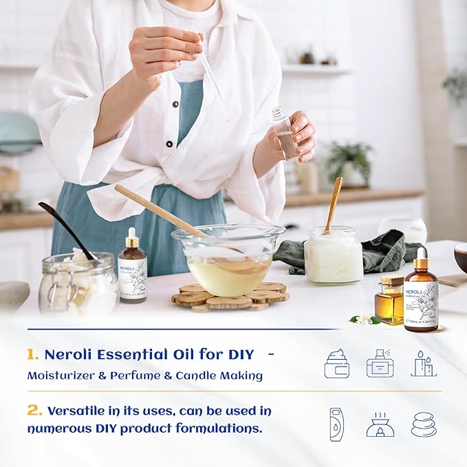 - Safer: Our neroli essential oil is steam distilled from the flowers of the neroli flower in Egypt and is tested for purity and composition by GC/MS, MSDS, COA, IFRA, etc